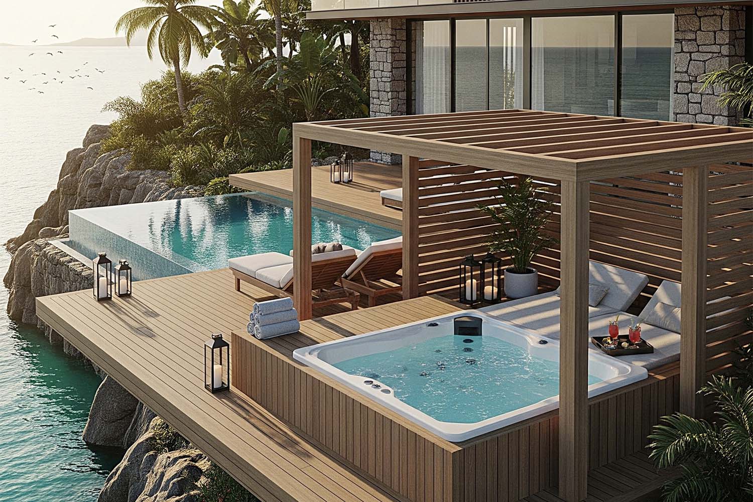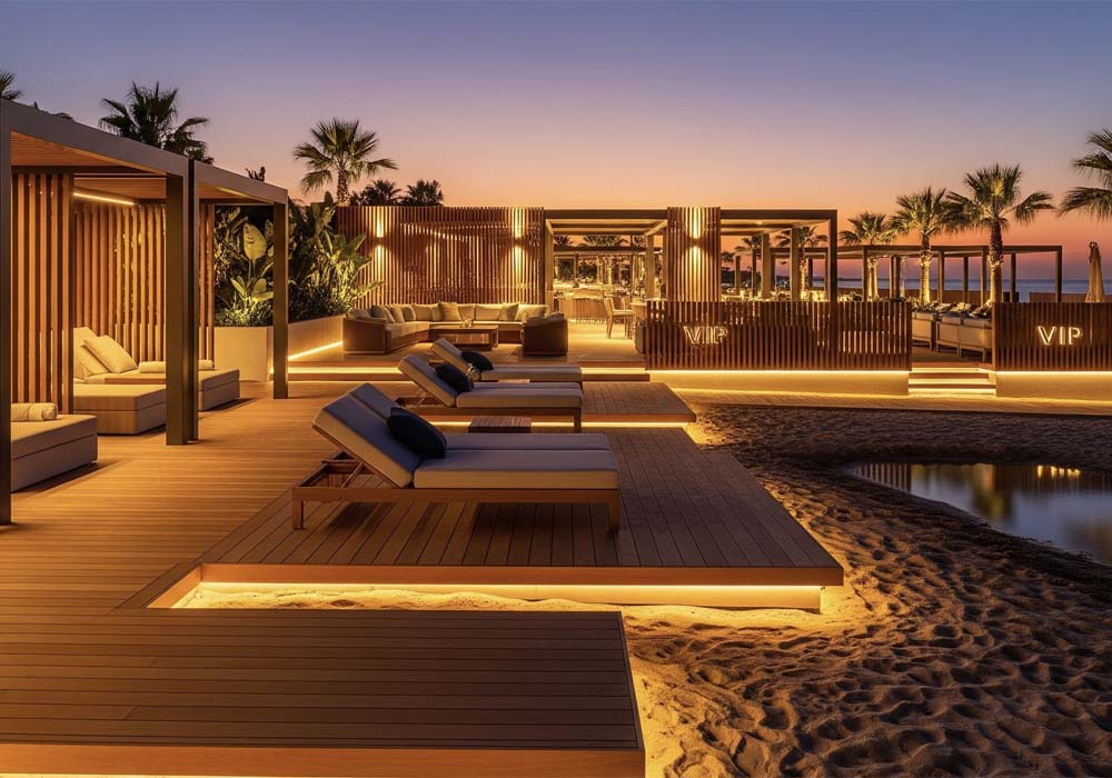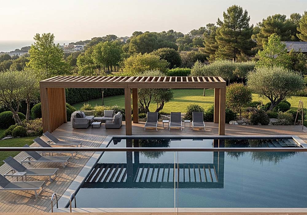 The GoldDeck aluminum deck system, finished with a high-quality wood-effect film, blends timeless design, durable structure, and authentic wood texture to elevate your garden, terrace, or poolside.