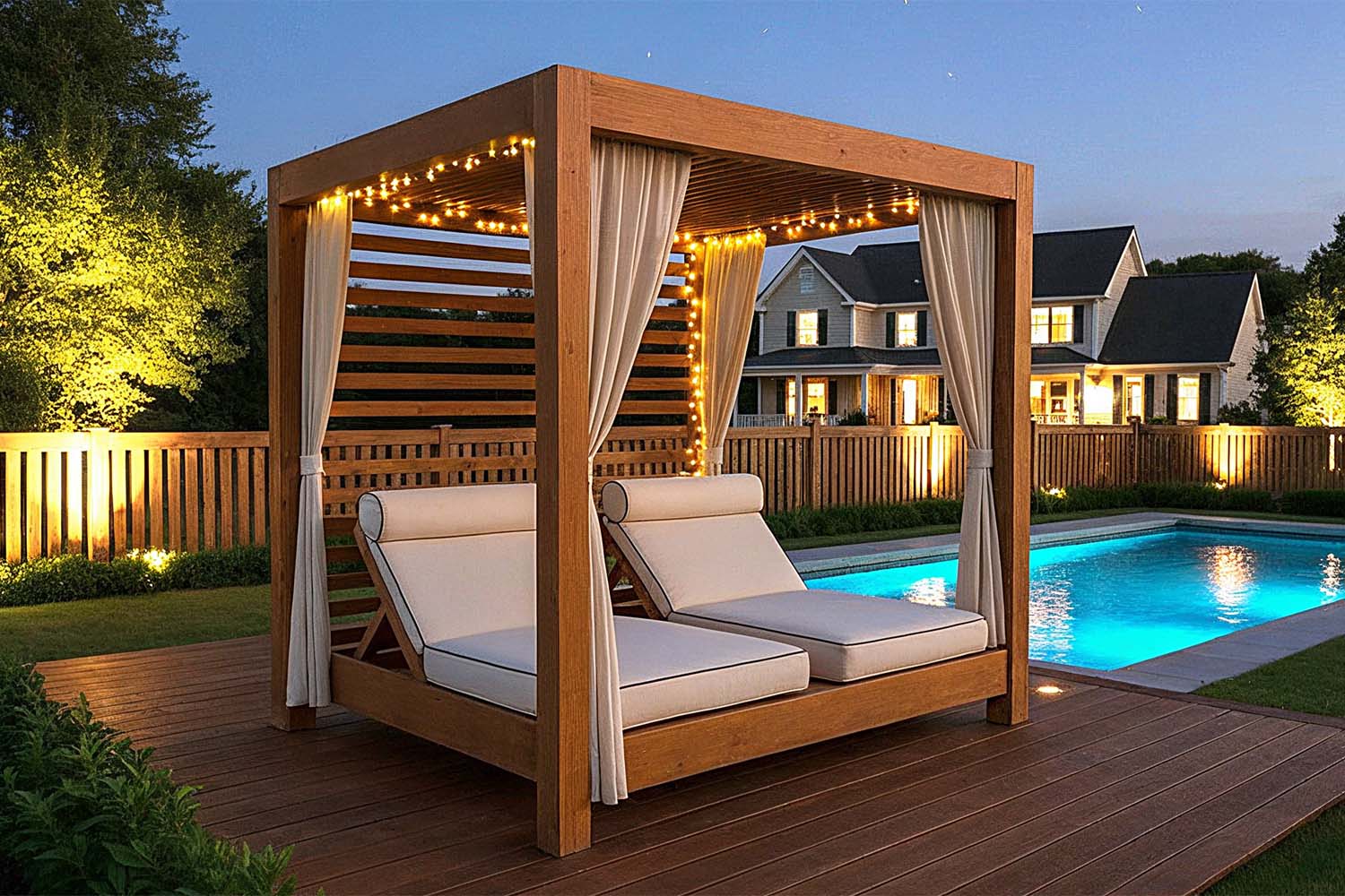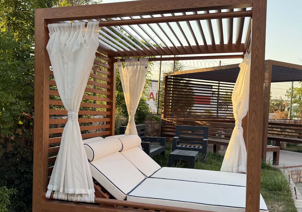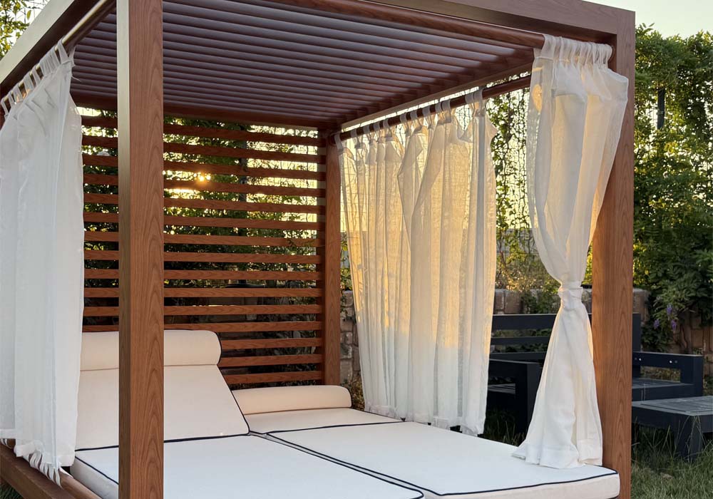 With fully closable curtains, it can easily transform into a private retreat whenever needed, providing both privacy and protection from the sun.