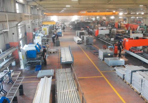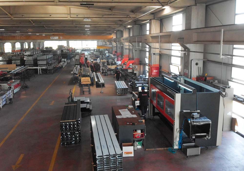Our mechanical treatment line has a developed machine park to make cutting, drilling, punching, notching, deburring and barcode printing.