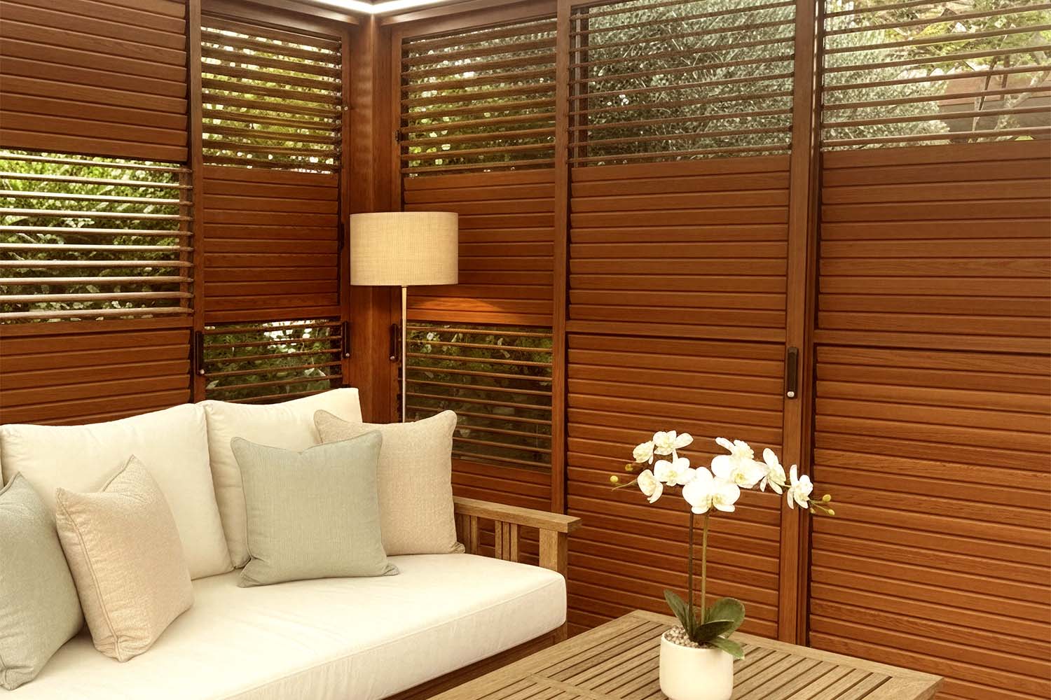 It combines the natural elegance of wood with the enduring strength of aluminum, allowing you to enjoy comfort without compromise. GoldLouver minimizes the effects of sun and weather, serving as a stylish architectural feature when desired and a protective shield when needed.